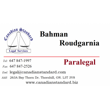 Bahman Roudgarnia - Canadian Standard Legal Services