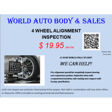 World Auto Body offers TUNE UPS, TIRE REPAIR, WHEEL BALANCING, SUSPENSION, and STEERING AND EXHAUST REPAIR.